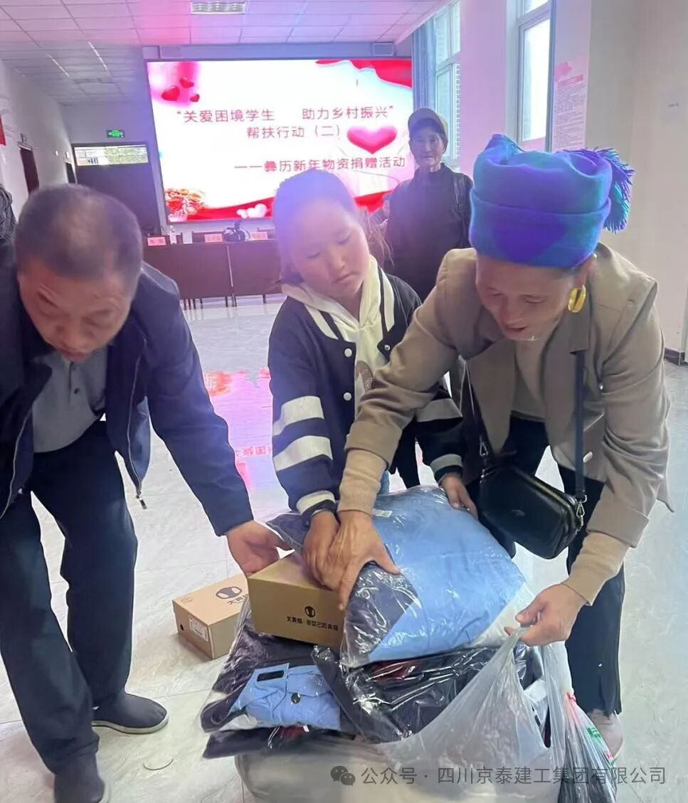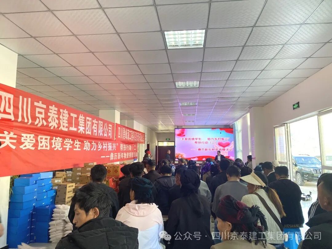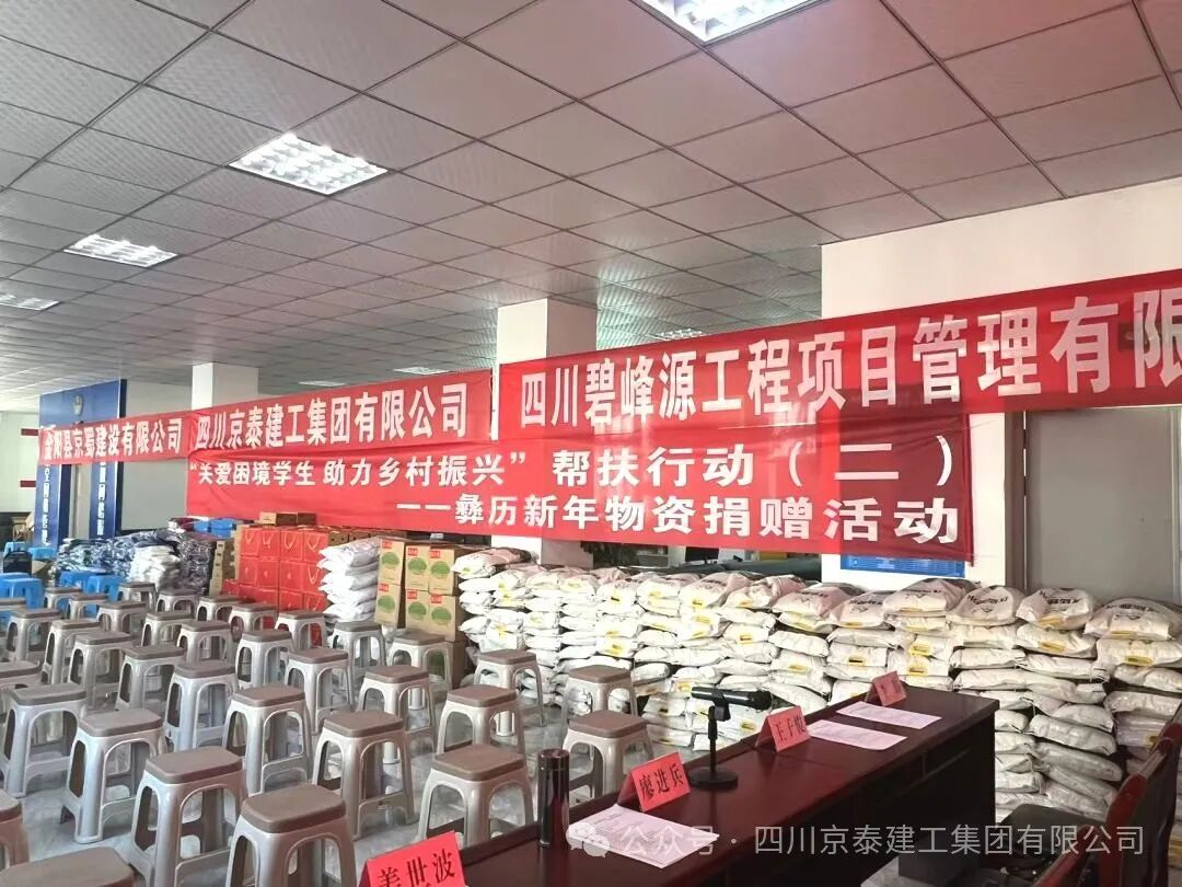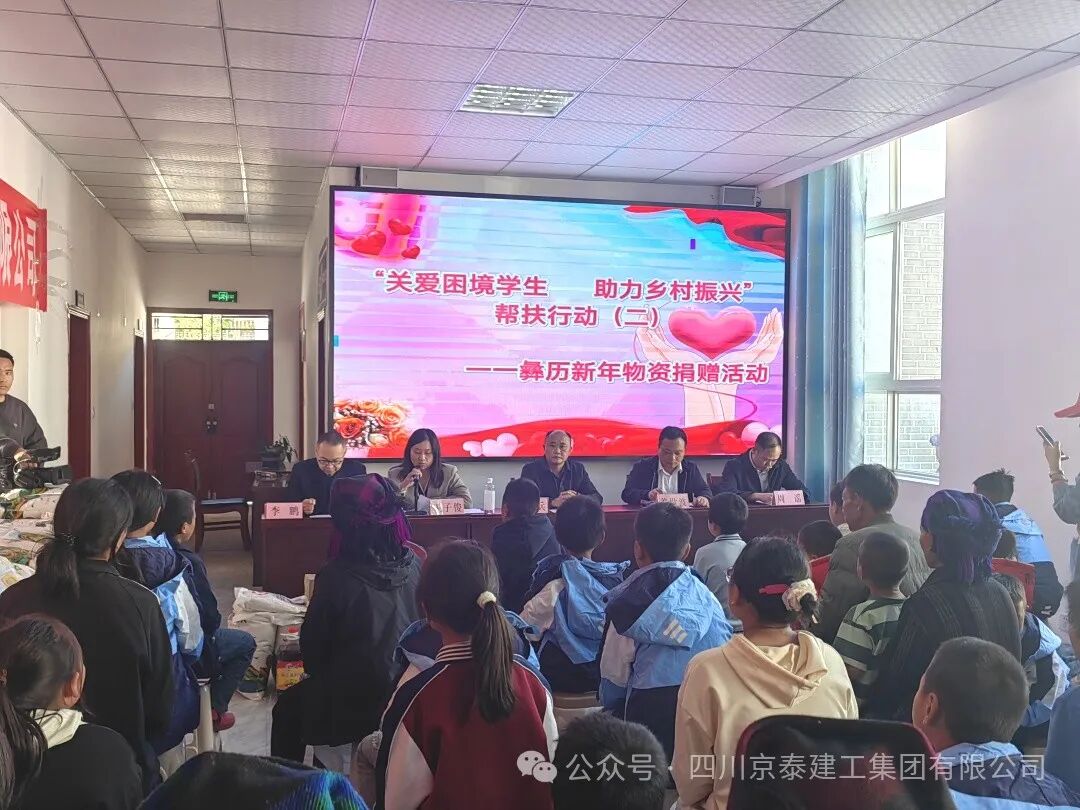 四川京泰建工集团有限公司携手金阳县京蜀建设有限公司、四川碧峰源工程项目管理有限公司以每年不低于五十万的圆梦基金助力的“关爱困境学生,助力乡村振兴”第二次彝族新年物资捐赠活动于2024年11月15日下午在金阳县派来镇光明社区举行。凉山州金阳县县委常委、县纪委书记、监委主任廖进兵,凉山州金阳县派来镇党委书记姜世波,四川京泰建工集团有限公司人力资源部经理崔映蕾,金阳县京蜀建设有限公司总经理周谣,四川碧峰源工程项目管理有限公司总经理王子俊出席本次活动。 凉山州金阳县县委常委、县纪委书记、监委主任廖进兵同志发表讲话,向长期以来关心和支持困境儿童的企业和社会各界表示衷心的感谢和崇高的敬意!讲话中指出此次活动不仅是物质上的帮助,更是一种精神上的鼓舞,让我们看到了乡村振兴的美好前景,社会爱心企业的善举缓解了贫困学生们的燃眉之急,更为他们的未来点燃了希望之光,同时也为高质量发展金阳注入强劲的力量! 捐赠活动现场,气氛热烈而温馨。由四川京泰建工集团有限公司、金阳县京蜀建设有限公司、四川碧峰源工程项目管理有限公司员工代表及派来镇工作人员为117位困境学生们发放彝族年帮扶活动的物资,孩子们收到物资时,脸上不自觉的洋溢着惊喜和感动的笑容! 最后我们希望每一位同学都在自己的道路上不懈探索、努力前行。愿在此与大家共同探讨和分享我们的期待,用一份心、燃起千份希望、点亮前行的路;希望每一个同学能充分发挥自身的潜力,展现出独特的光彩,树立正确的价值观和人生观;希望你们立鸿鹄之志,怀桑梓之念,不忘党和政府的深情关怀,不忘大家的关爱,把感恩之心化为不竭的动力和实际行动,用满腔的热忱和过硬的本领回报金阳,回馈社会。